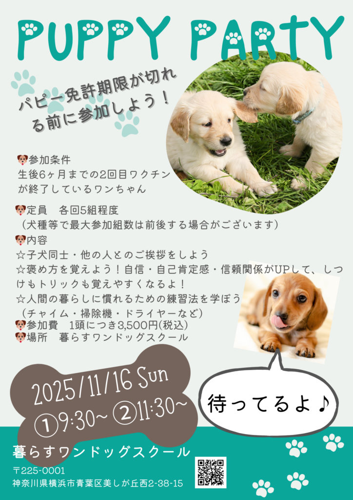 今回のセミナーは飼い主様を対象としているため、ご愛犬・ご愛猫等のご同伴いただけることもありますので、ご相談ください。
